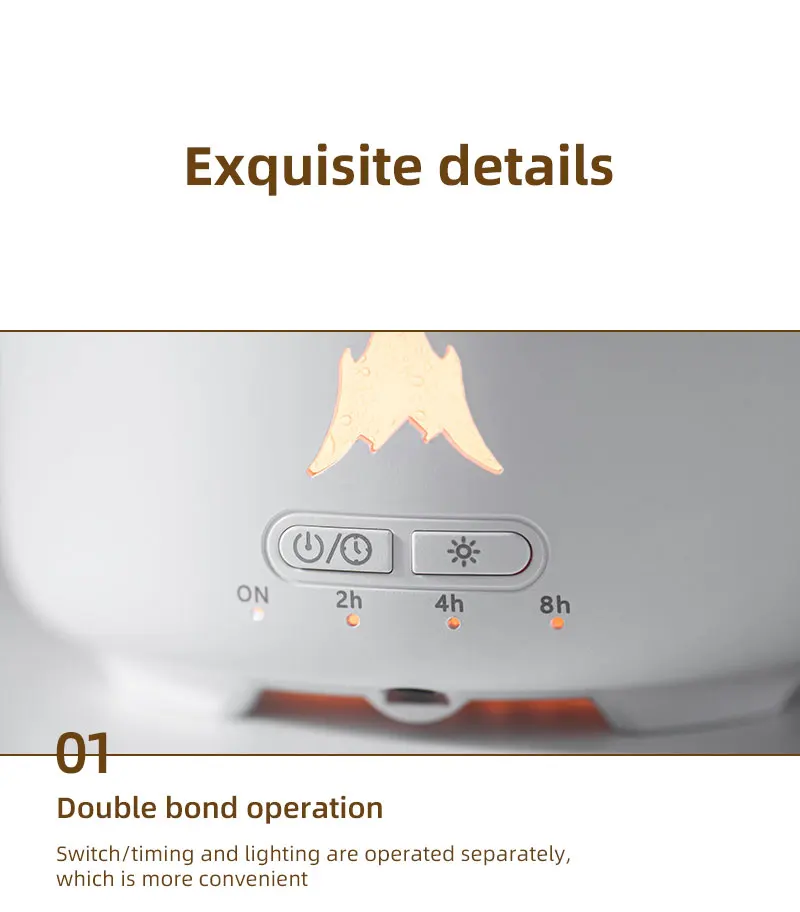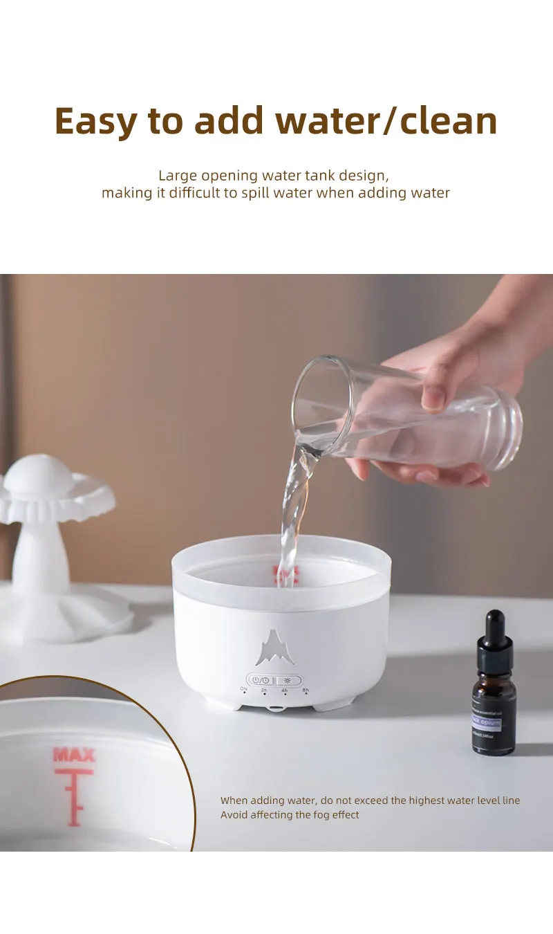 Ultradźwiękowy atomizer – tworzy delikatną mgiełkę do szybkiego i równomiernego nawilżenia powietrza w pomieszczeniu.
